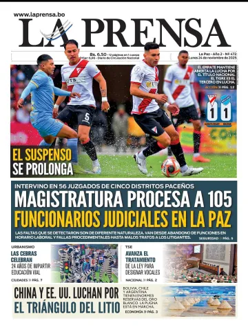 22/11/2025.- Aurora no cumplió en cancha, perdió hoy ante Gualberto Villarroel por 1-4, ahora esperará la resolución del TAS (Tribunal de Arbitraje Deportivo, por sus siglas en inglés) para intentar salvarse del descenso de categoría.