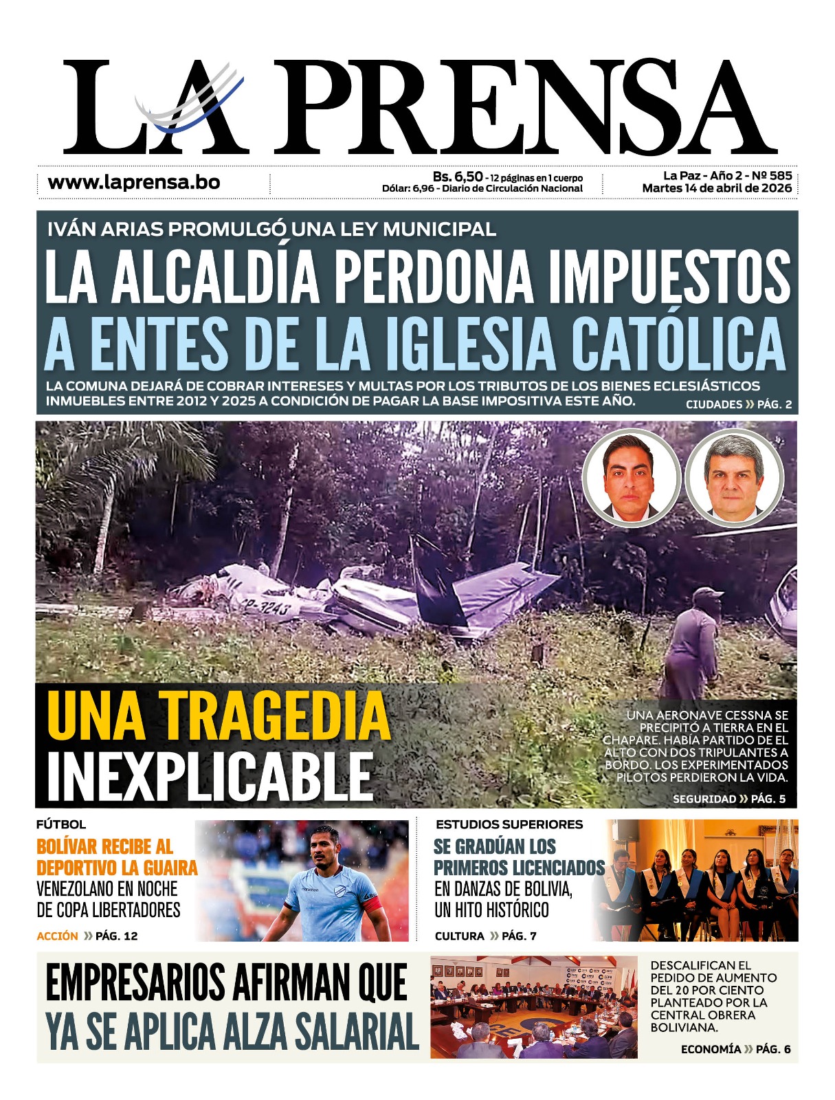 Equipos de salvamento localizaron sin vida a los tripulantes de la aeronave que perdió contacto con los radares durante la mañana de este lunes. El ministro de Obras Públicas, Mauricio Zamora, ratificó el hallazgo de los cuerpos en una región del norte cochabambino. Las víctimas cumplían funciones al mando de la avioneta con matrícula CP-3243, la cual despegó desde la sede de gobierno con...