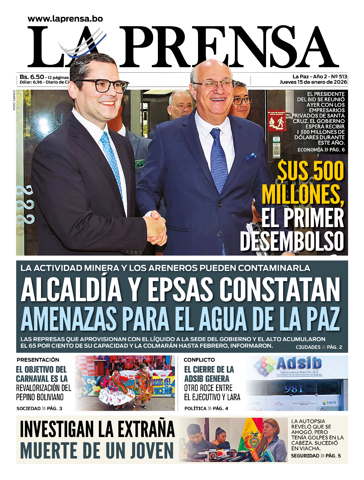 14/1/2026.- El alcalde Iván Arias denunció la modificación arbitraria de los lechos de los ríos en las zonas altas del municipio paceño debido a la explotación minera y la recolección de materiales de construcción. Durante una inspección técnica, la autoridad edil señaló que estas intervenciones cuentan con permisos de la Autoridad Jurisdiccional Administrativa Minera y de la Gobernación, pero...