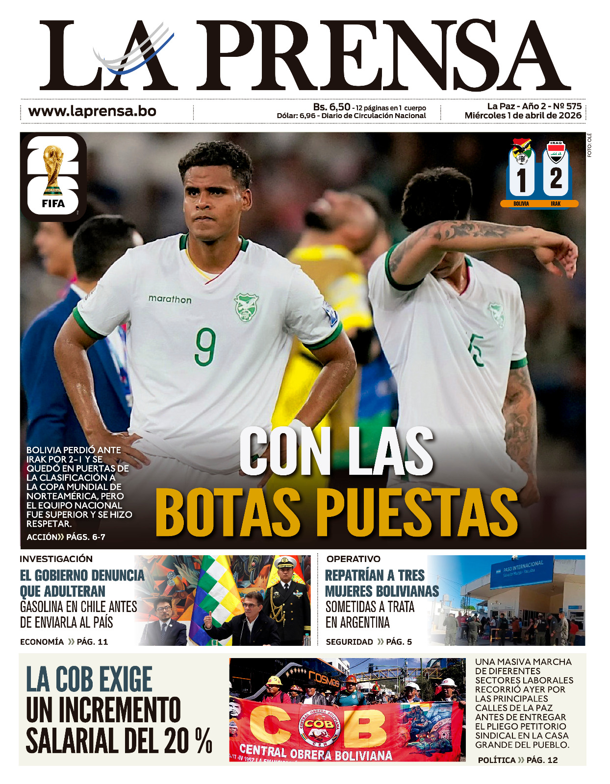La selección boliviana de fútbol vio truncada su aspiración de clasificar a la Copa del Mundo tras caer por 2-1 frente a su similar de Irak. El encuentro de repesca se desarrolló en el estadio BBVA de la ciudad mexicana de Monterrey. El combinado...