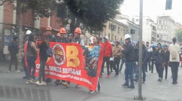 25/12/2025.- Afiliados a la Central Obrera Boliviana retomaron las movilizaciones en el centro de La Paz durante este jueves feriado, manteniendo su firme exigencia de abrogar la polémica normativa. Entre estribillos y el uso de pirotecnia, los...