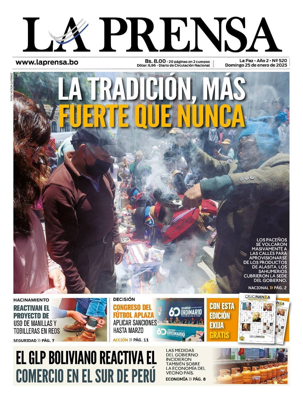24/1/2026.- El jefe de Estado, Rodrigo Paz Pereira, participó este sábado en los festejos al mediodía por la llegada del Ekeko en el centro de la ciudad de La Paz. Acompañado por su esposa, el mandatario salió de las instalaciones gubernamentales...