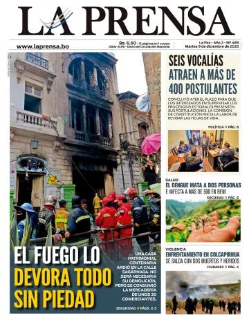 8/12/2025.- La extinción del fuego que consumió una antigua casona en la calle Sagárnaga de La Paz experimentó un retraso a causa del funcionamiento deficiente de los hidrantes de la zona. El alcalde Iván Arias afirmó que estos puntos de suministro de agua no estaban operativos, lo que obligó a los bomberos a conseguir el vital elemento en la calle Cochabamba, lo que implicó una interrupción...