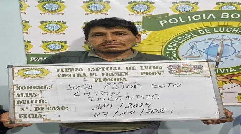 El señor José Caton Soto fue aprehendido por efectivos de la Policía Boliviana, acusado de haber provocado incendios en la comunidad de Sivingalito, municipio de Pampa Grande, en el departamento de Santa Cruz.