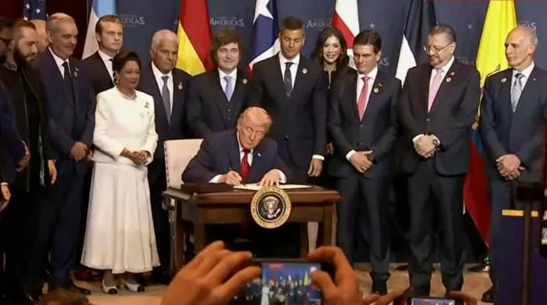 El presidente de Estados Unidos, Donald Trump, selló un acuerdo estratégico con doce mandatarios regionales durante la cumbre Escudo de las Américas. El pacto establece una cooperación militar sin precedentes destinada a fortalecer la seguridad y el desarrollo en el hemisferio bajo una defensa común. Durante el encuentro, el líder estadounidense admitió el distanciamiento previo con la región y recalcó la urgencia de consolidar nexos diplomáticos para enfrentar amenazas compartidas en todo el continente.