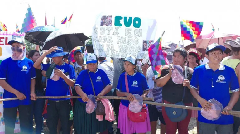 23/1/2026.- La conmemoración del Día del Estado Plurinacional en el trópico de Cochabamba transcurrió este viernes sin la comparecencia del expresidente Evo Morales. Wilma Colque, máxima representante de la Coordinadora de las Seis Federaciones, confirmó que el líder cocalero no participó en los actos centrales desarrollados en la localidad de Lauca Ñ. Pese a la falta del exmandatario, simpatizantes asistieron a las concentraciones utilizando máscaras con su imagen y portando emblemas representativos, mientras la dirigencia local justificó la inasistencia por supuestos problemas en su salud.