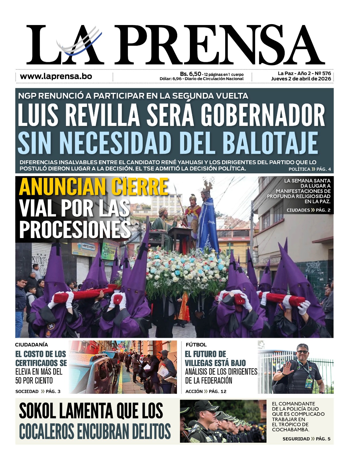 El Tribunal Supremo Electoral (TSE) aceptó este miércoles la dimisión de la agrupación Nueva Generación Patriótica (NGP) para disputar el balotaje por la Gobernación de La Paz. La Sala Plena determinó la aplicación de la Ley 026 del Régimen Electoral ante el abandono de la competencia. Por este motivo, las autoridades electorales proclamarán a Luis Antonio Revilla Herrero como la máxima...