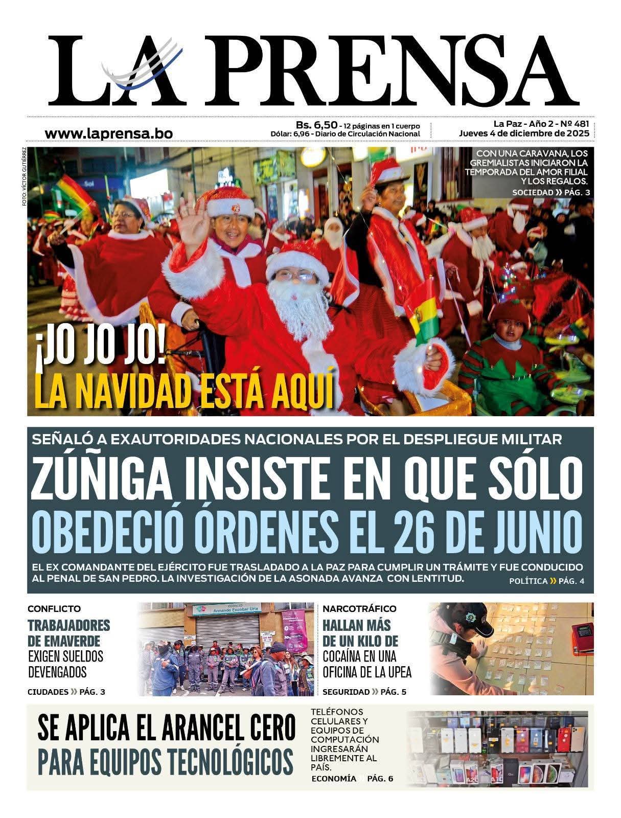 4/12/2025.- El Juzgado 5to de Instrucción Penal Cautelar ordenó este jueves la detención preventiva por un periodo de seis meses en la cárcel de San Pedro para Rubén Ríos, líder de la Confederación Nacional de Panificadores de Bolivia (Conapabol). Esta determinación se da en el marco de un segundo proceso legal relacionado con supuestas irregularidades en la gestión de la harina subvencionada...