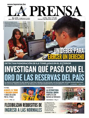 4/12/2025.- El presidente del Banco Central de Bolivia (BCB), David Espinoza, manifestó hoy su inquietud al anunciar que se identificaron "operaciones atípicas" y la pignoración de una fracción de las reservas de oro durante la gestión previa. El...