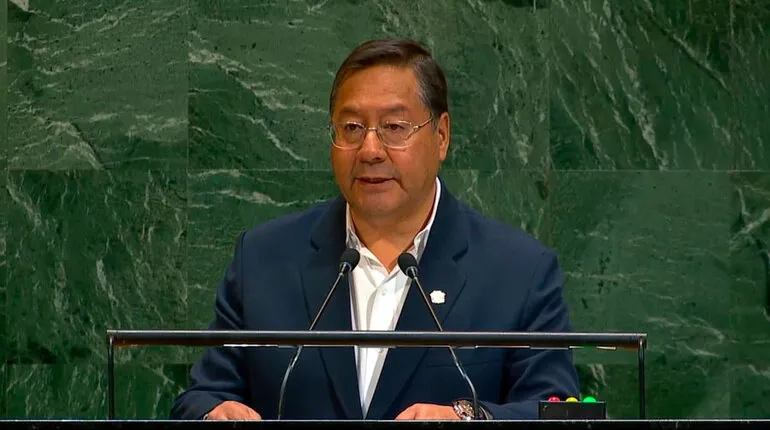 25/9/2025.- En su último discurso como presidente ante la Asamblea General de las Naciones Unidas (ONU), Luis Arce Catacora advirtió sobre un grave deterioro del orden internacional y alertó sobre la inminencia de una "tercera guerra mundial de nuevo tipo" si no se actúa de inmediato.