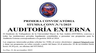 STUMSA abre convocatoria para una auditoría externa a la gestión 2020–2024
