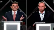 12/10/2025.- A tan solo una semana del balotaje, los candidatos presidenciales Rodrigo Paz (PDC) y Jorge "Tuto" Quiroga (Libre) protagonizaron este domingo un intenso debate donde confrontaron...