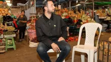 27/8/2025.- El candidato a la vicepresidencia por la alianza Libre, Juan Pablo Velasco, se presentó este miércoles en el mercado Abasto de Santa Cruz, dispuesto a debatir con su homólogo del PDC,...