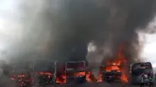 Incendio de gran magnitud consume seis buses en taller mecánico de Oruro
