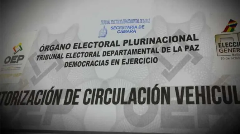El trámite estará disponible hasta el miércoles 15 de octubre. Esta medida se basa en el Reglamento de Permisos de Circulación para Vehículos Motorizados Terrestres en Procesos Electorales. La normativa faculta al TSE para otorgar permisos a instituciones del Órgano Ejecutivo, Legislativo, Judicial, Tribunal Constitucional Plurinacional, organizaciones políticas, embajadas, organismos internacionales y misiones de observación electoral.