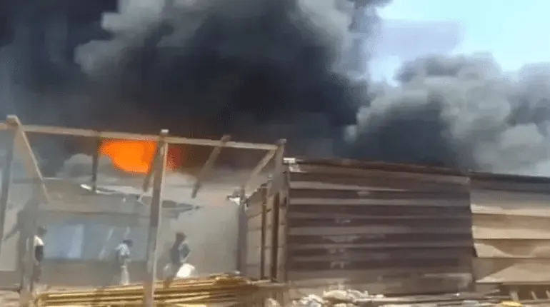 26/9/2025.- Un voraz incendio consumió gran parte de una feria en Ascensión de Guarayos, Santa Cruz, durante la mañana de este viernes. El fuego se propagó rápidamente, afectando alrededor del 90% de las casetas de esta zona comercial, conocida como la "nueva feria".