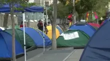 Grupos afines al candidato René Yahuasi permanecen instalados en las afueras de las dependencias del Tribunal Supremo Electoral para exigir la realización de la segunda vuelta en los comicios para...